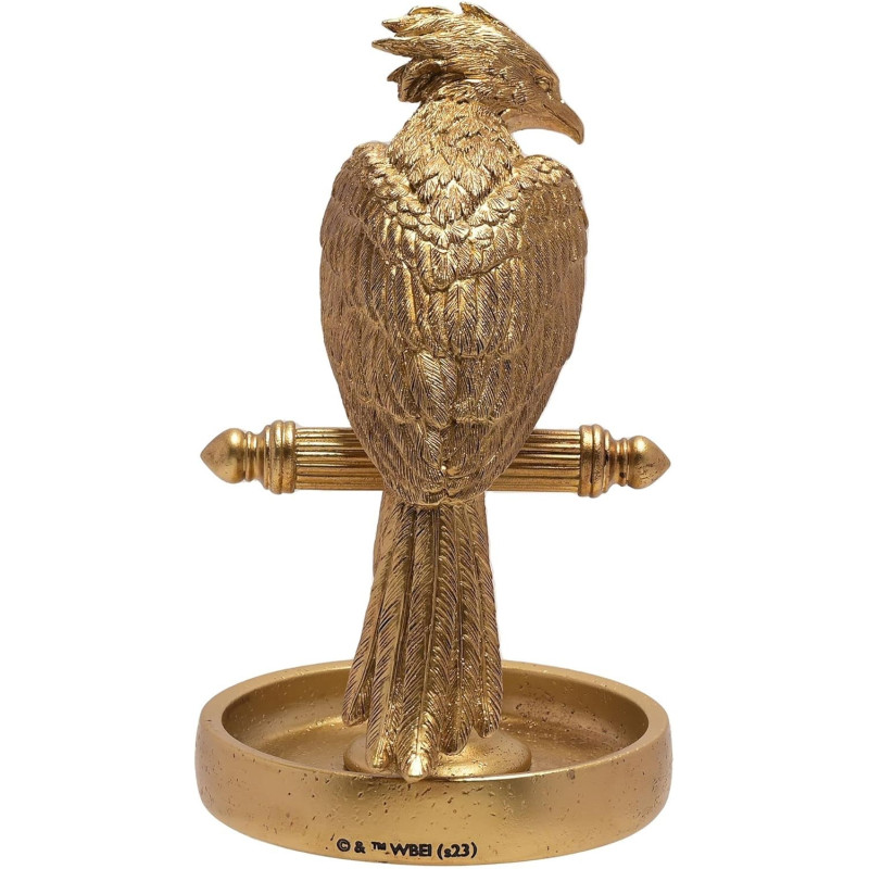 Le présentoir à bijoux en résine dorée mesure 21 cm de hauteur et présente une finition à effet métallique avec un design Hogwarts 3D.