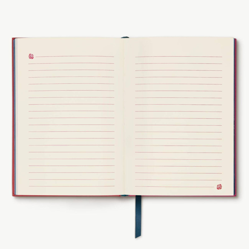 Ce carnet à couverture rigide décorée avec des détails en feuille d’or présente des pages de garde illustrées différentes au recto et verso, ajoutant une touche artistique unique. Il comprend 200 pages lignées, des bords de page bleus et un ruban marque-page assorti. Ce design raffiné s’inspire de l’édition MinaLima Classics du célèbre conte de Gabrielle-Suzanne Barbot de Villeneuve.