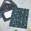 La partie pochette double page du dossier transparent et la papeterie ont le même design.