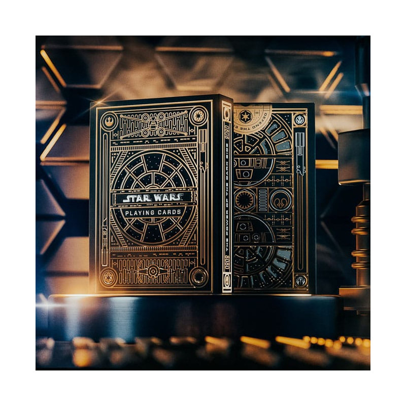 Le dos des cartes semble plaqué du même or que celui utilisé pour votre droïde préféré C-3PO. Imprimé avec une feuille d'or de la plus haute qualité, le design du dos est absolument époustouflant sous tous les angles et scintille magnifiquement à la lumière. Cette édition nous vient véritablement d'une galaxie lointaine, très lointaine…